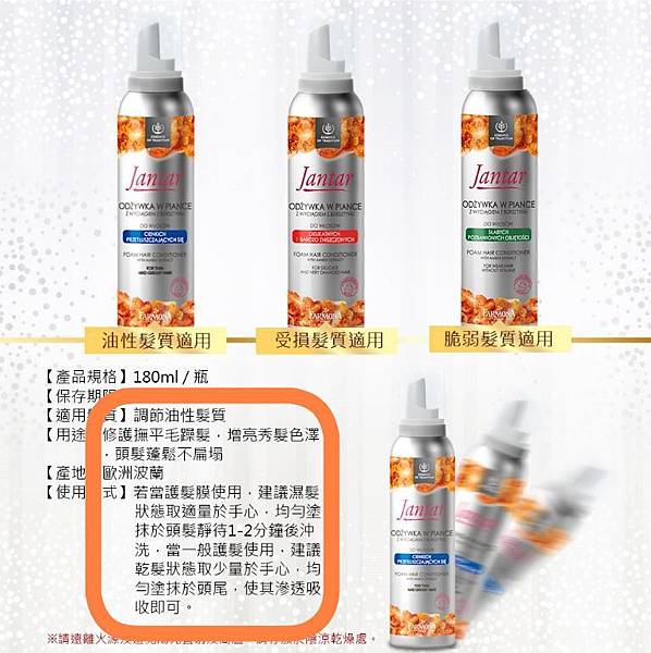 看86 shop官網上波蘭Herbal Care 的產品有出這一罐琥珀調理護髮慕斯就很想試試!!